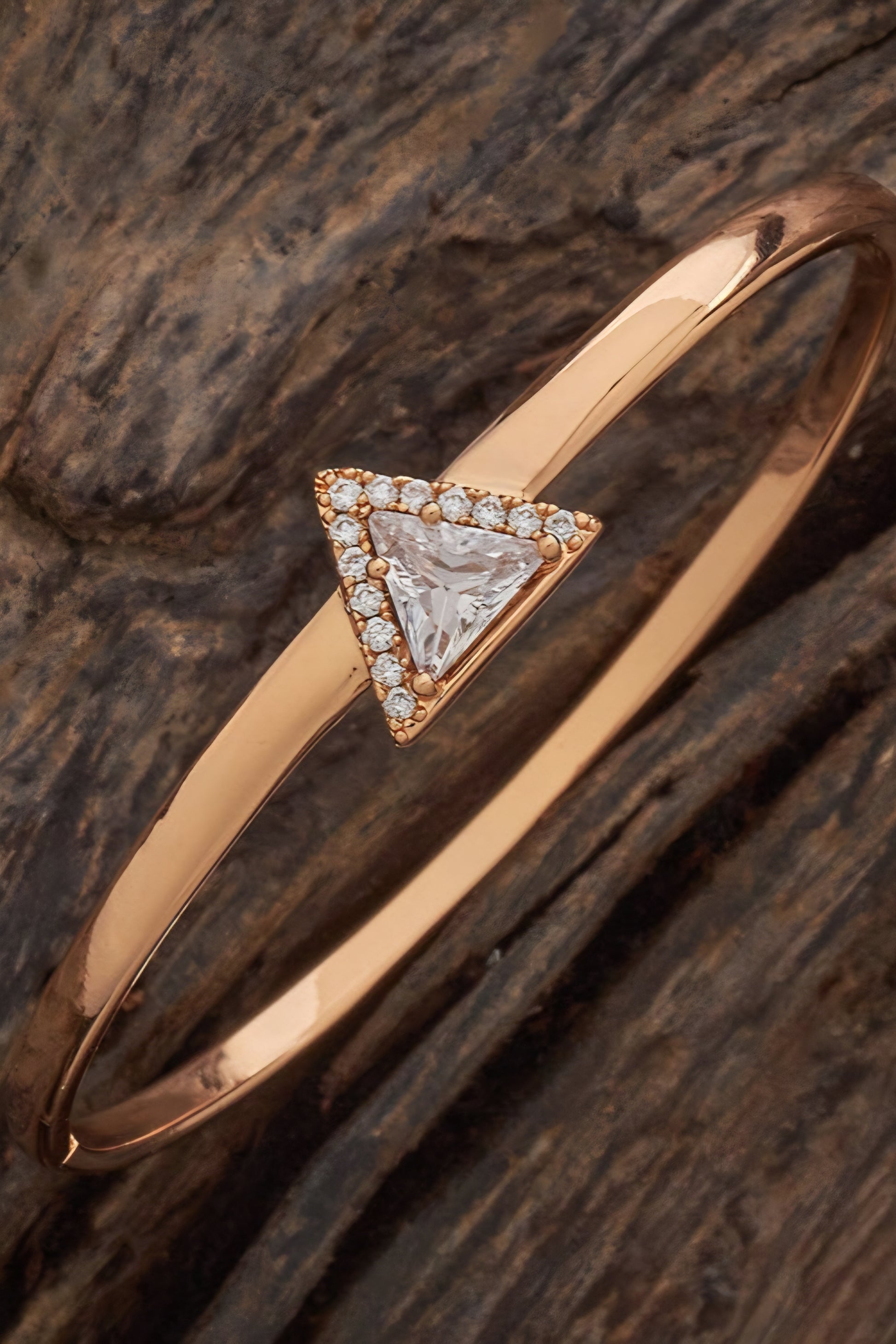 Need a bracelet that goes with everything? This thin rose gold one is perfect! It has a sparkly triangle charm with little stones and one big stone in the center. Wear it alone for a simple shine, or stack it on with your other bracelets for a fun look. It's a timeless piece you'll always want to wear.